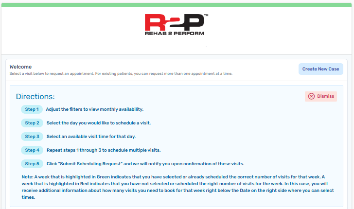 - If you are a returning R2Peep!, Please click on the CREATE NEW CASE BLUE BUTTON